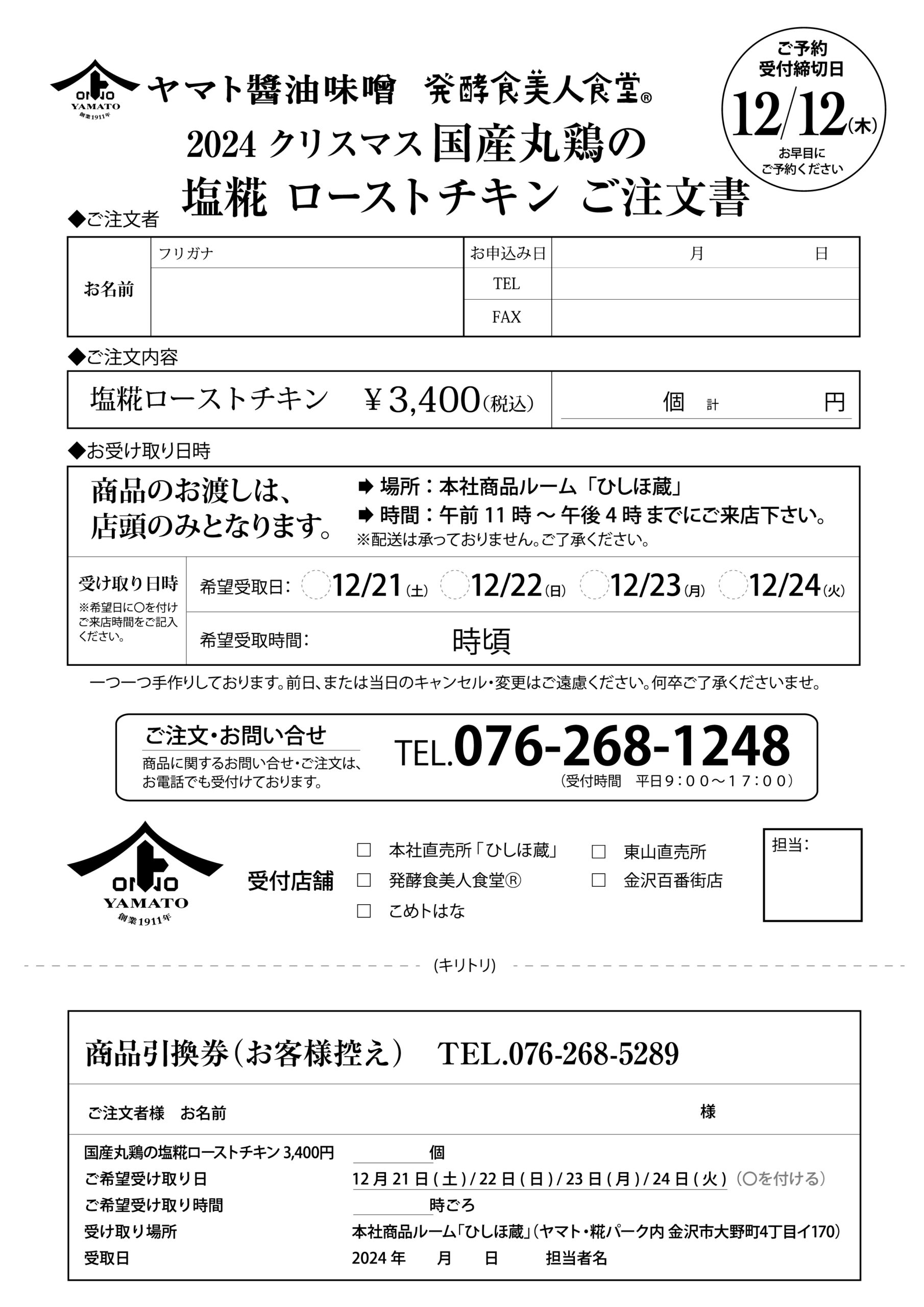 ご注文TEL:076-268-1248