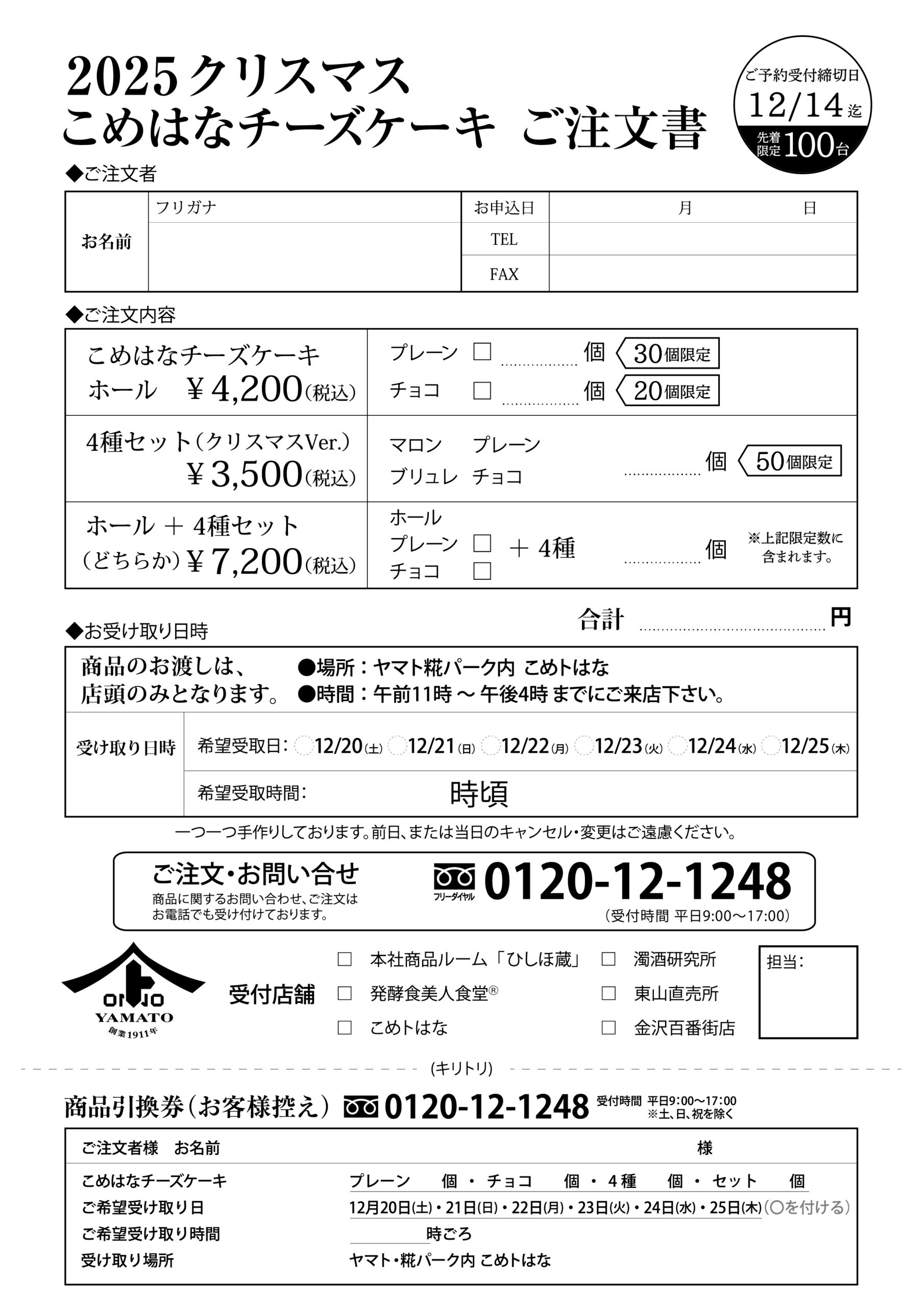 >>「2025クリスマス こめはなチーズケーキ」のご案内ダウンロードはこちら>>