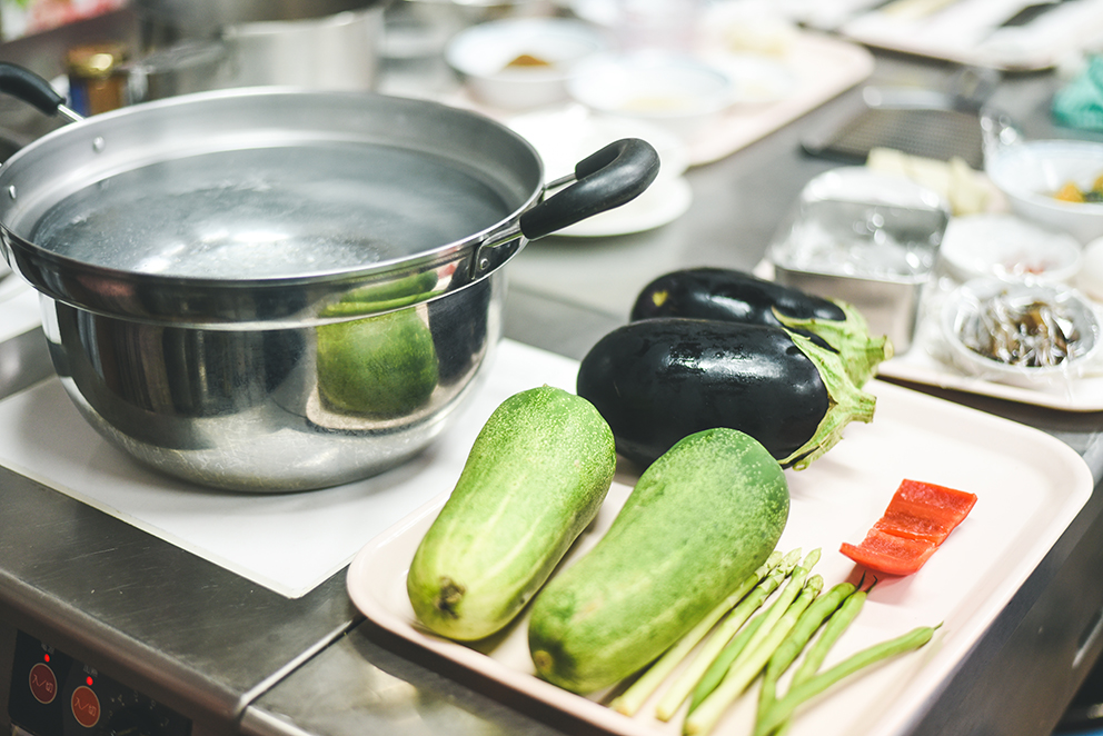 そのお湯があるおかげで、野菜の下処理や調理がすぐに出来て効率がいいそうです。
